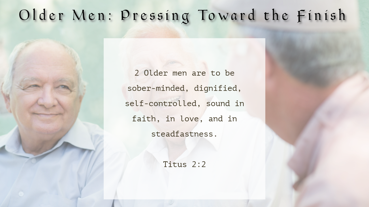 Paul starts by urging older men to be sober-minded, dignified, self-controlled, and sound in faith, love, and steadfastness. These qualities may not come naturally, but they reflect a life shaped by grace. There's a temptation to think, "I've put in my time," but Paul challenges older men to finish strong—to be role models of perseverance and spiritual maturity.