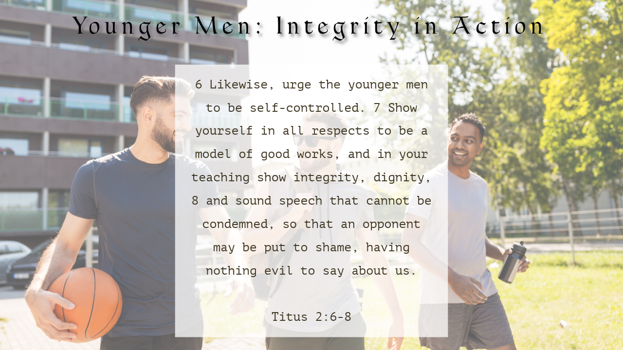 For younger men, Paul emphasizes the importance of self-control—a trait that often requires intentional growth and discipline. Titus is personally challenged to be an example to young men, not just in what he teaches, but in how he lives. His integrity, speech, and consistency are meant to reflect the gospel. In a culture that often values impulsiveness or self-promotion, Paul calls for a steady, grounded life shaped by grace.