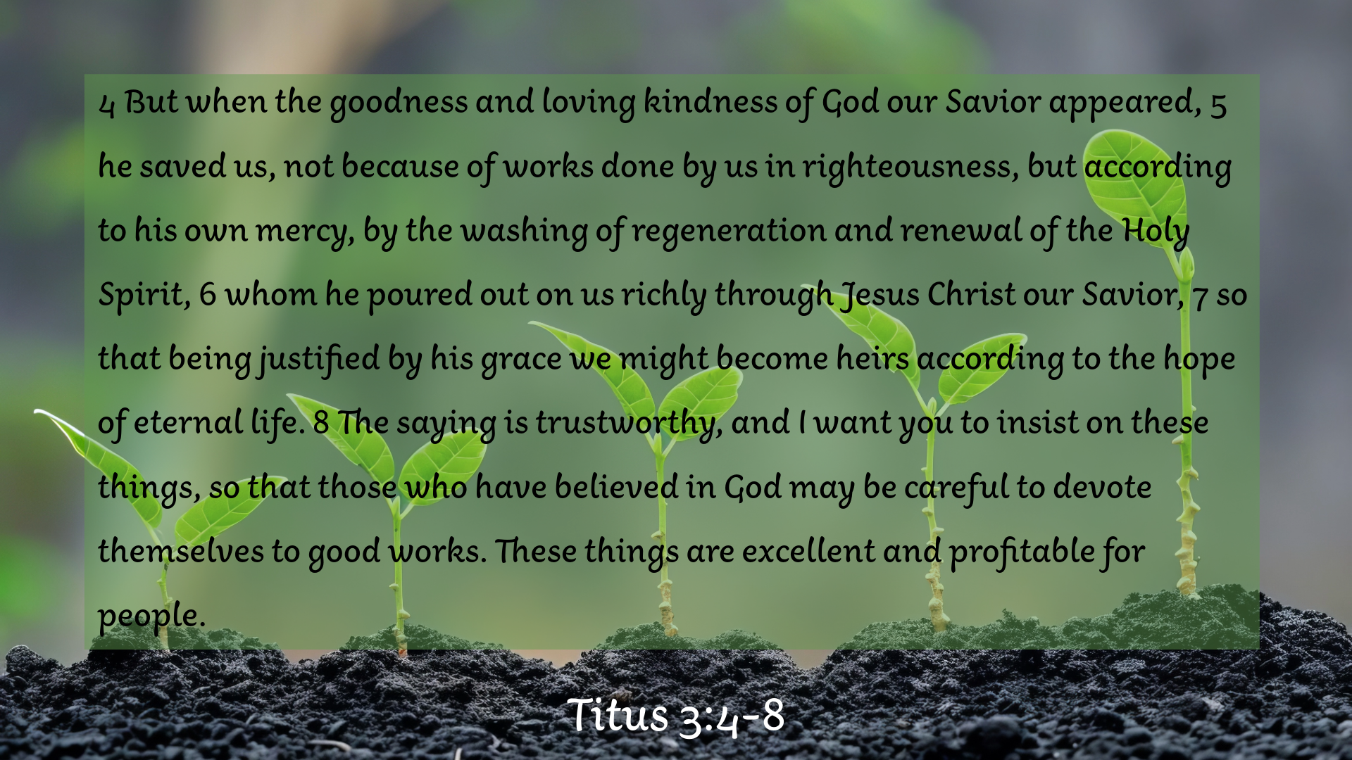 - Salvation is not earned by effort. It's a gift of God's kindness and mercy.