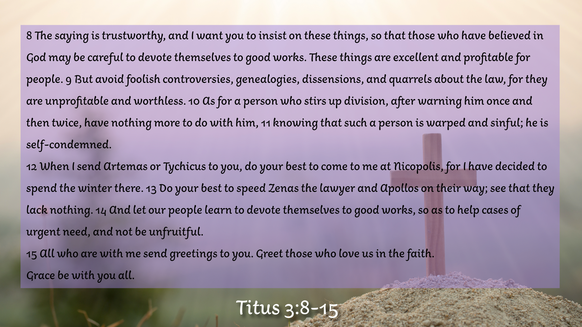 - Guard unity. Paul warns Titus to avoid divisive people–a striking reminder of God's desire for harmony in His church. Jesus prayed for unity in John 17, and Paul echoes that call here.