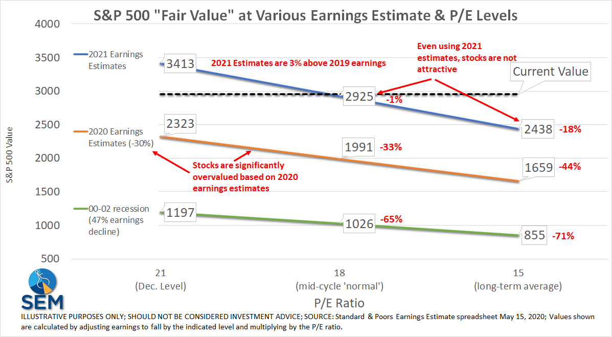 -Relative versus Absolute: Stocks are currently being priced based on a relative economy (how soon we get back to normal) versus absolute economic output (the long-term output) — we are seeing a significant shift lower in output levels; We will not get back to the old levels for quite some time, yet stocks are assuming we'll be back to "normal" in 18 months. In other words think of December 2019 as 100%. March 2020 with just 1 month of the pandemic saw output levels drop to around 90%. Economists estimate June 2020 we will see output around 70-75%. Going back to 90% or even 95% or 98% is not good enough to support stock prices as they assume we'll be at 103% of normal by the end of 2021.