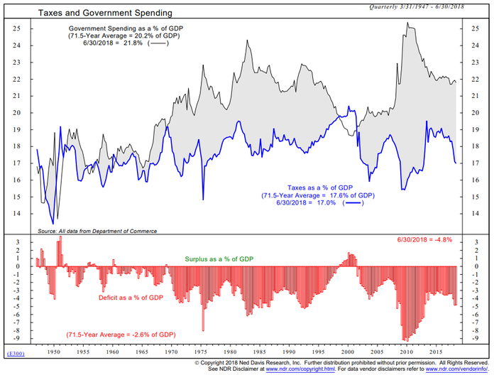 The irony is the 10-year Treasury is moving higher due to fears the Federal Reserve is moving too slowly to control inflation. Nothing erodes an economic recovery (or the value of a bond) like inflation. Even more ironic, is longer-term rates are moving higher over fears the US Government Budget Deficit is out of control. Increasingly we are going to see interest rate payments eating more and more of the revenue. The tax cuts, while boosting economic growth short-term are only causing both higher inflation and lower revenue thus far. When you add the inflationary impact a full-blown trade war will have in the US, you get a recipe for even higher inflation.